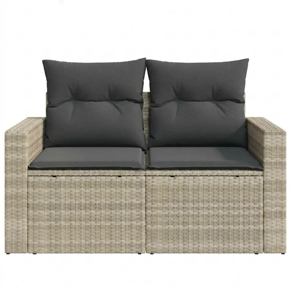 Zweiersofa aus Polyrattan mit Kissen, Hellgrau